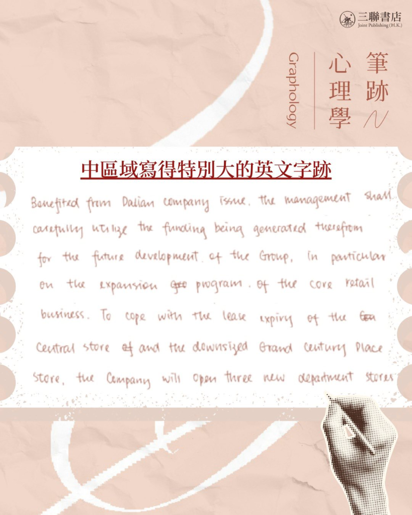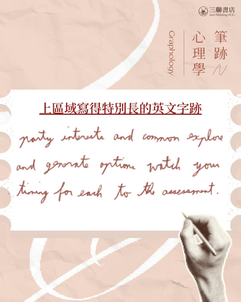 在筆跡專家林婉雯Maria所著的《筆跡心理學:兩性關係的秘密》中,便教我們透過觀察心儀對象的英文筆跡書寫比例,了解對方的興趣所在: