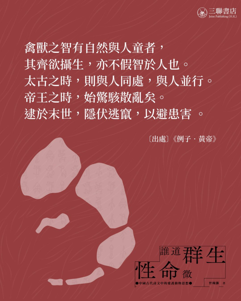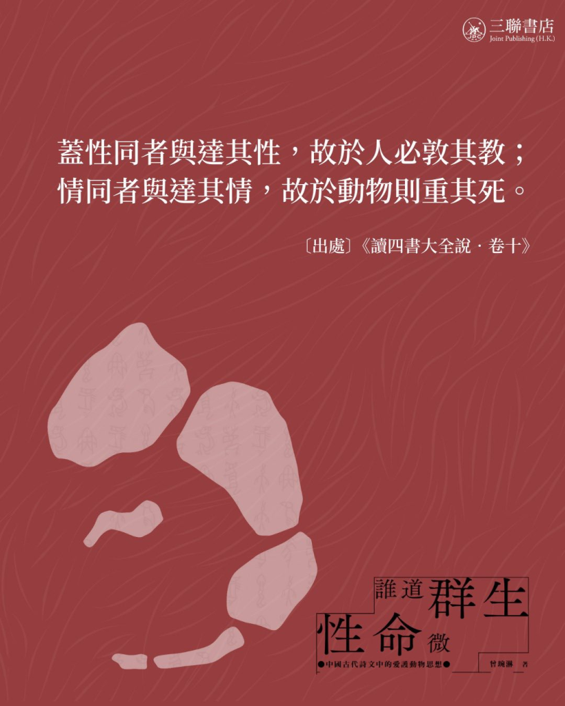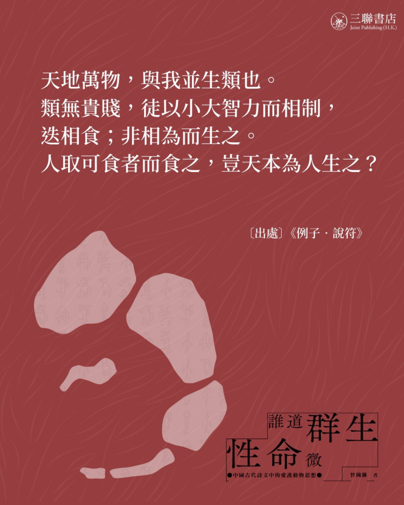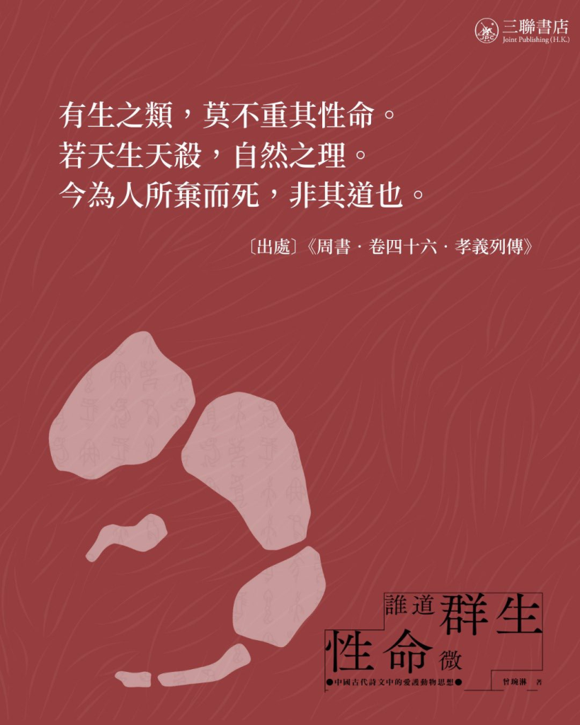 由曾琬淋所著的《誰道群生性命微——中國古代詩文中的愛護動物思想》收錄七十篇古代愛物詩文和故事美談,道出自中國古代以來源遠流長的愛物文化。中華文化中對動物的仁愛與敬畏,早已深植於經典之中。讓我們從一眾古代文人哲士的文字,重新認識我們自身的愛物傳統。