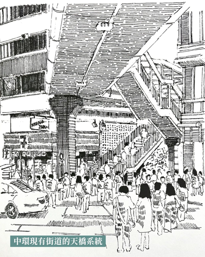 全長八百米、垂直差距達一百三十五米的中環半山扶手電梯,把半山和海旁的兩區連接起來,為居民創立了上班、生活和娛樂都是「十五分鐘」內的步行圈。起初這項巨大工程遭到居民反對,深怕高低起伏的架空天橋會破壞民居的景觀。最終,扶手電梯在1993年啟用,整個電梯系統由二十條行人電梯組成,扶手電梯在早上繁忙時間向下行方便居民上班,下午繁忙時間便會向上行方便市民消遣,這才慢慢被居民接受。時至今日,這座行人電梯成為了著名旅遊景點,以及許多國際城市規劃時借鑒的設計案例,展現了如何在有限的城市空間內疏通人流並改善社區環境。