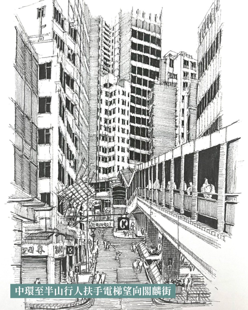 每逢萬聖節,香港中環一帶便成為全城焦點,扮鬼扮馬的人群穿梭於半山的陡斜街道之間,塑造了香港萬聖節獨特的慶祝場景。由簡國軒(Michael)所著的《紙筆・香港:香港城市變遷的筆墨記錄》透過細膩的素描和生動的文字,記錄了從半山扶手電梯,到太平山街的唐樓群等獨具特色的城市空間:
