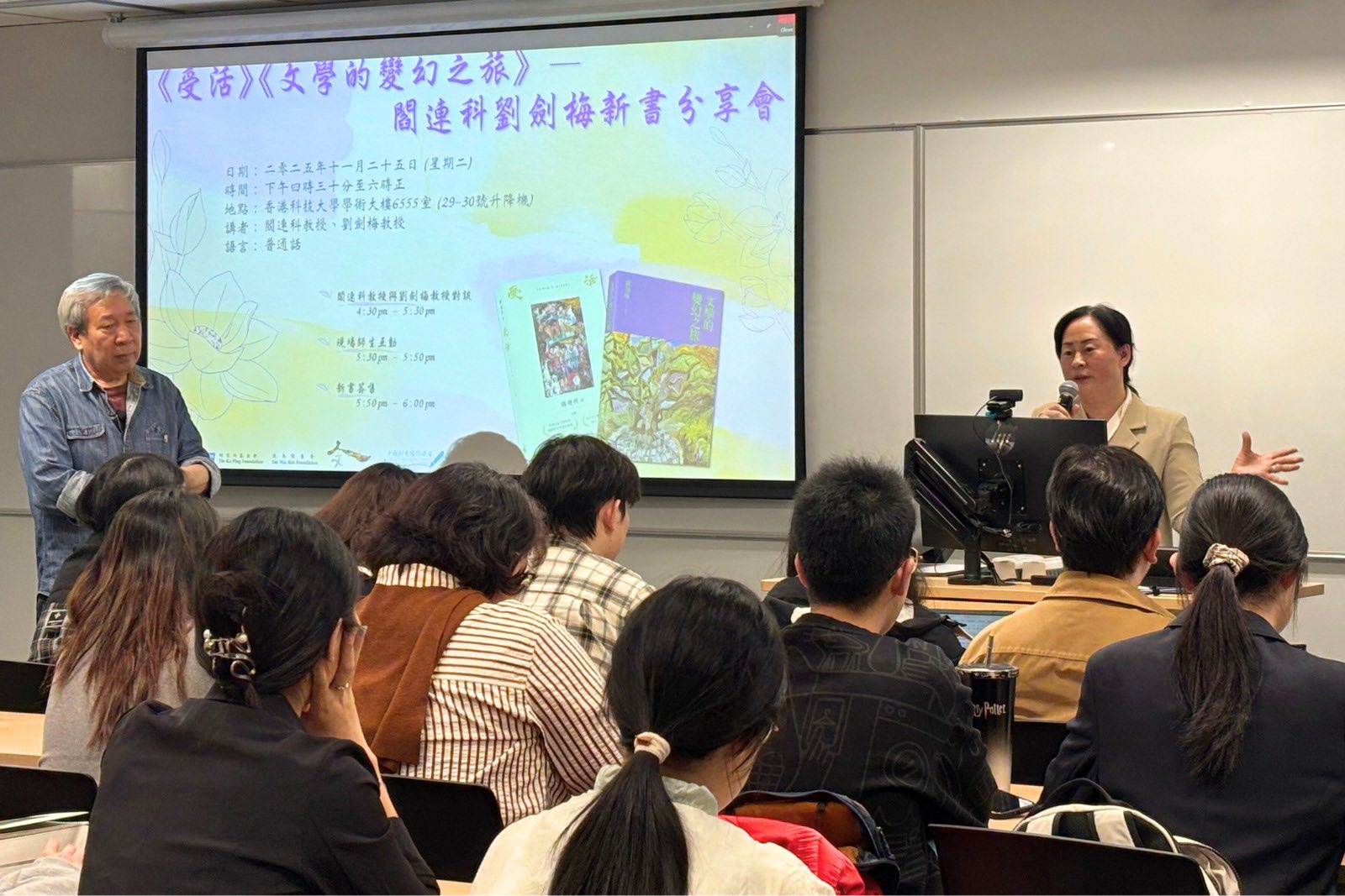 著名作家閻連科與劉劍梅教授為各自新作《受活》(繁體版)及《文學的變幻之旅》 於香港科技大學合辦新書分享會,合計近過百名師生參與,場面熱鬧。