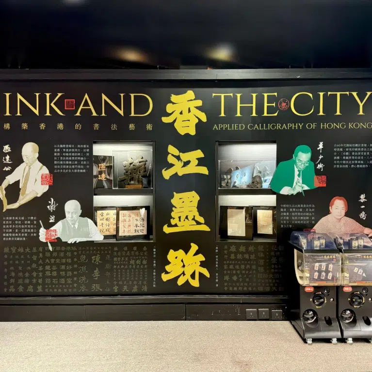,逐變成了雅俗共賞的視覺文化。是次,《香江墨跡——構築香港的書法》的作者黃宣游和他的墨跡團隊以展覽形式,將香港的書法美學再次重現在大眾眼前。展覽與書本呼應,以上世紀四大商業書法家區建公、謝熙、卓少衡及黎一鳴的足跡為線,展出他們的書法招牌或相關展品。