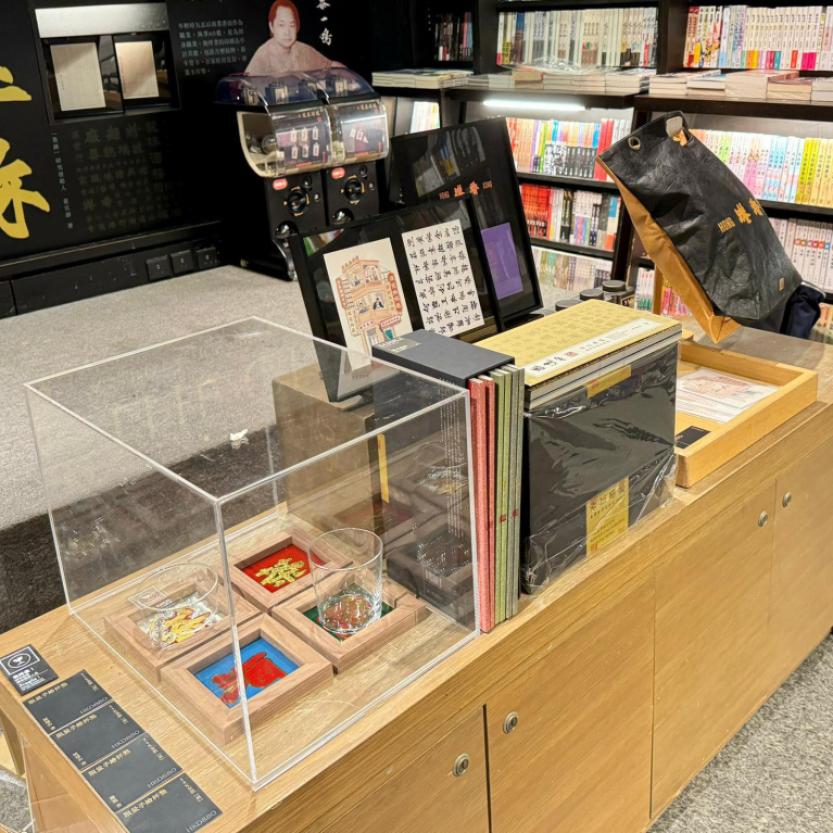 除此之外,墨跡團隊 墨跡 亦製作了一系列文創商品,以商業價值重新賦予書法藝術新的生命。其中的書法字杯墊為全人手製作,並以24k鍍金鑲嵌,每款都是獨一無二。