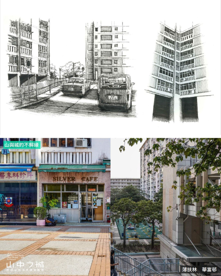 在寫書的過程中,Michael與Deson不約而同到訪過西營盤、華富邨及中環等地。以華富邨為例,Michael從眾多景物中萬裡挑一,將華富邨密集的雙塔式住宅立面與寧靜的內街景象紀錄下來;Deson則集中記錄邨內依山而建的公眾設施,包括升降機、走廊通道與平臺商鋪等。從兩位作者的研究成果中,我們不僅能看見華富邨結合地形與空間運用的設計巧思,更能從居民的生活形態中,瞥見人與建築「互惠互利」的關係:通道設施便利出入、民生小店價廉物美,為居民提供日常生活所需;雙塔式設計、內街外街等區分公眾與個人居住空間,平衡社區連結與個人隱私的需求。