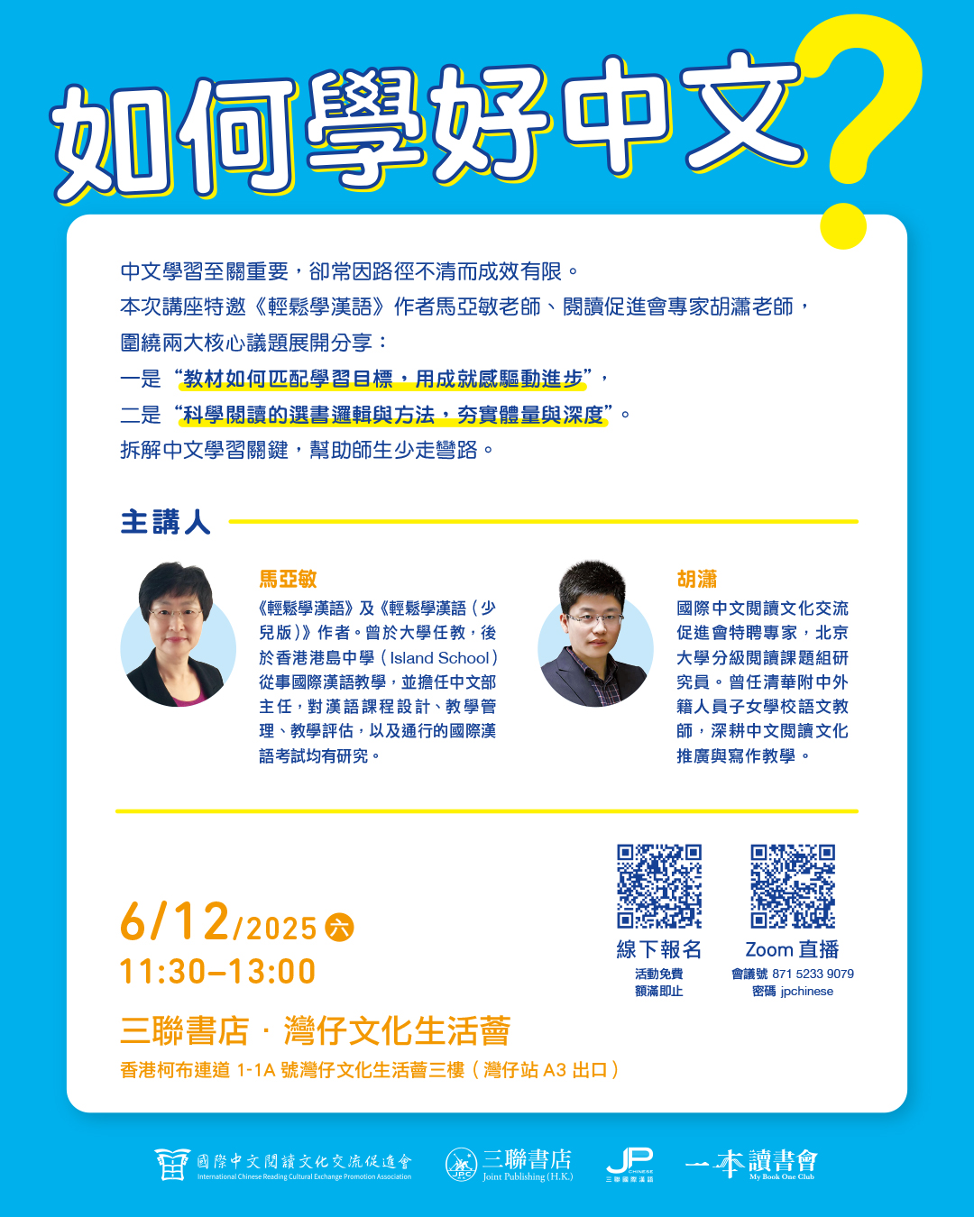 本次講座特邀《輕鬆學漢語》作者馬亞敏老師、閲讀促進會成員胡瀟,圍繞兩大核心議題展開分享: