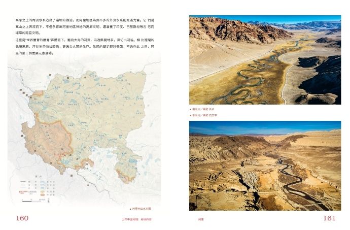 從歷史視角看地理,是這套書的一大特點。地理現象通常是從三維空間進行描述,然而《少年中國地理》別具慧眼,從地質構造演變、人類社會發展和當前國家建設三個時間尺度入手,探討地理現象的來源,用動態演變取代靜態描述,在四維時空裏展現活的中國地理。