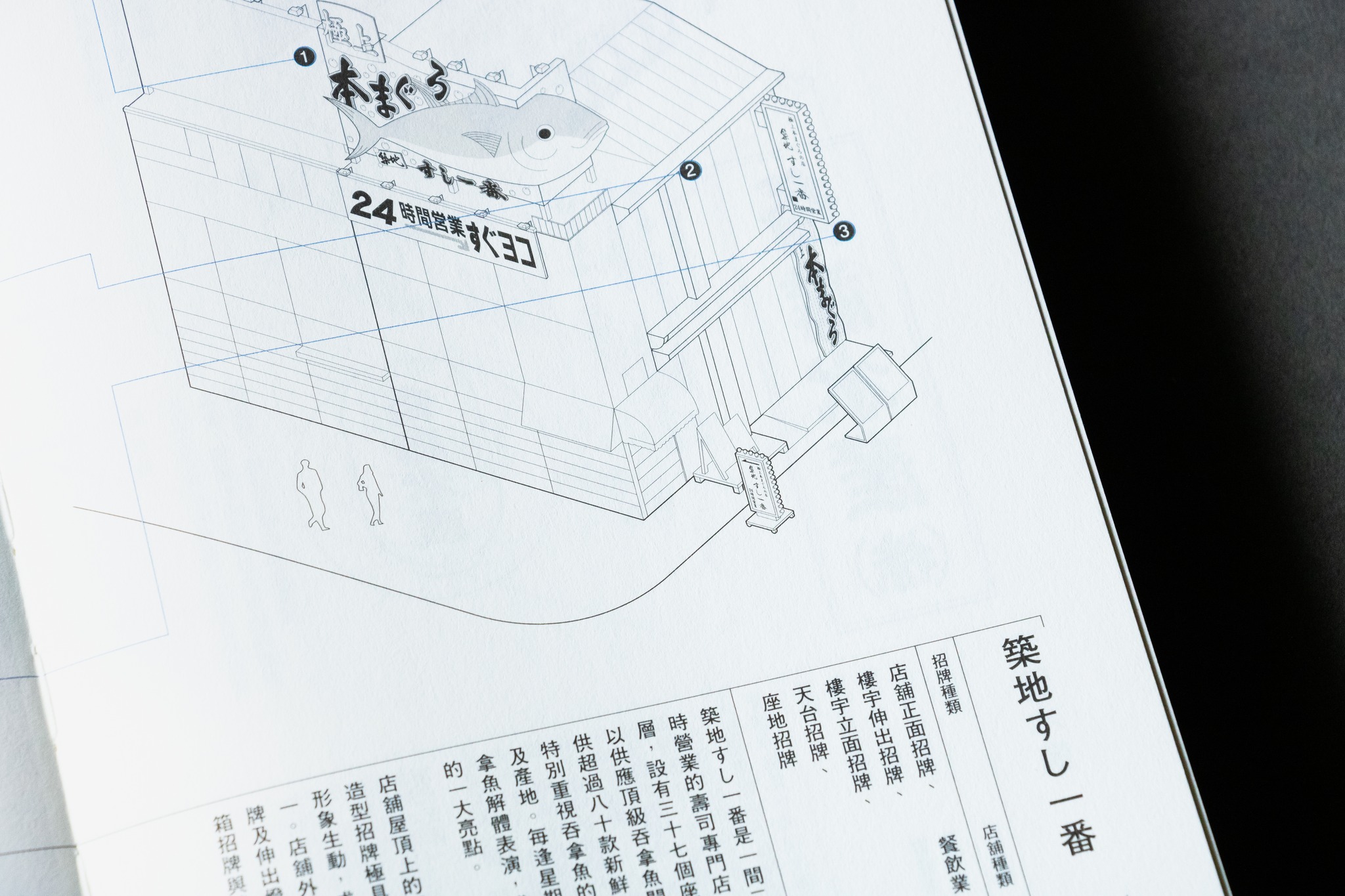 值得一提的是,本書特別繪製了大量資訊插圖(Infographics),以解構各區具代表性的店舖招牌。這些插圖以圖像化的方式呈現招牌的結構、設計元素與物料運用,幫助讀者更直觀地理解不同地區招牌的特色與背後的文化脈絡,比較各區招牌的異同,提升閱讀體驗,從而對東京招牌的設計邏輯、文化意涵與時代變遷有更全面深入的認識。