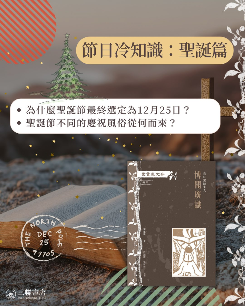 聖誕節是基督教徒慶祝耶穌誕生的節日。但不論在基督教舊教還是新教的歷史中,都沒有明確記載耶穌是在12月25日誕生,古代各基督教會對於聖誕節亦不曾規定一致日期。為什麼聖誕節最終選定為12月25日?聖誕節交換禮物、寫聖誕卡等慶祝風俗又從何而來? 為什麼聖誕節最終選定為12月25日? 關於12月25日是聖誕節的原因眾說紛紜。最常見的說法,便是因為12月25日是羅馬人及許多歐洲民族慶祝冬至的日子,他們認為這一天是一年真正的開始,是冬至春來萬物萌芽的象徵,教會便順勢將12月25日定下為紀念耶穌誕生的節日。 英國民俗學權威弗里采爵士卻有不同的看法。他在著作《金枝》寫道,聖誕節的起源與同化異教風俗有關。12月25日為古代異教徒慶祝太陽誕辰的日子,當時的基督教徒也會一同慶祝節日。教會看到教徒對異教節日的興趣,便將基督誕生節日定在12月25日,企圖將異教徒對於太陽的崇拜轉移到教會裏來。 聖誕節的慶祝風俗從何而來? 今天聖誕節的風俗,大多是從古代歐洲各民族慶祝冬至節的風俗中吸收來的,與教會無關: (內容輯錄自《葉靈鳳文存 卷三·霜紅室隨筆之博聞廣識》——聖誕節的小考證、民俗學家論聖誕起源) 《葉靈鳳文存 卷三.霜紅室隨筆之博聞廣識》葉靈鳳 著,許迪鏘、張詠梅 選編開度:148 x 210 mm頁數:272面定價:港幣168元按此線上購買